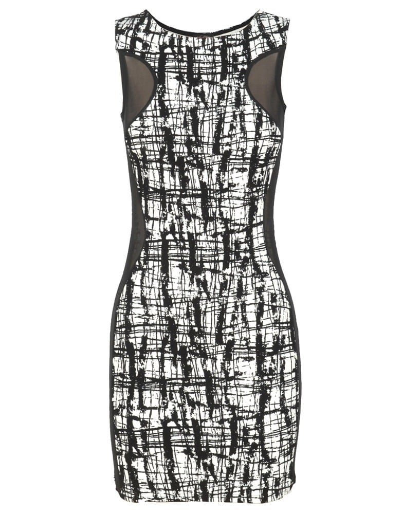 Monochrome Side Mesh inserts Mini Body Hugging Dress